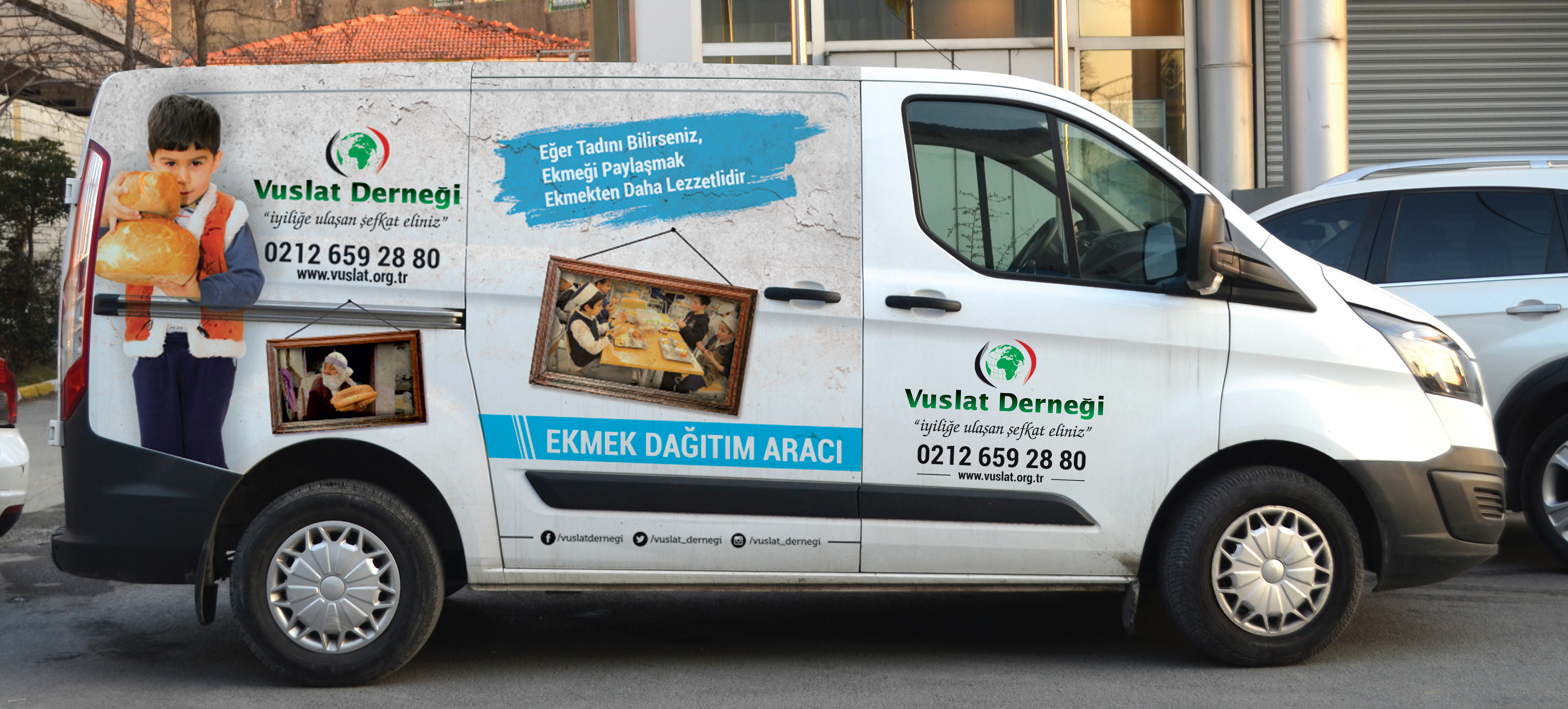 Vuslat Derneği ekmek dağıtım aracı reklam giydirmesi